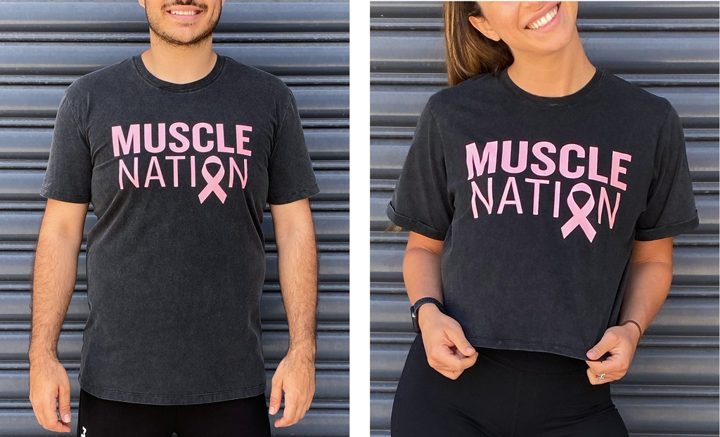 Breast Cancer Awareness Month is a cause very close to our hearts which has impacted members of our own staff, families, friends and athletes. Our vision was for our community to wear these tees with us with pride, to help make a difference to the research and treatment of breast cancer. Alongside our Muscle Nation Breast Cancer Awareness Tees, we also included an option on our website via the checkout for people to donate while placing their orders.