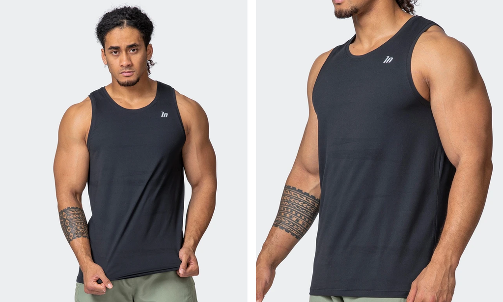 Our Mens Basic Tank set to be released in our Signature Collection is also mindfully made with 86% Recycled Polyester.