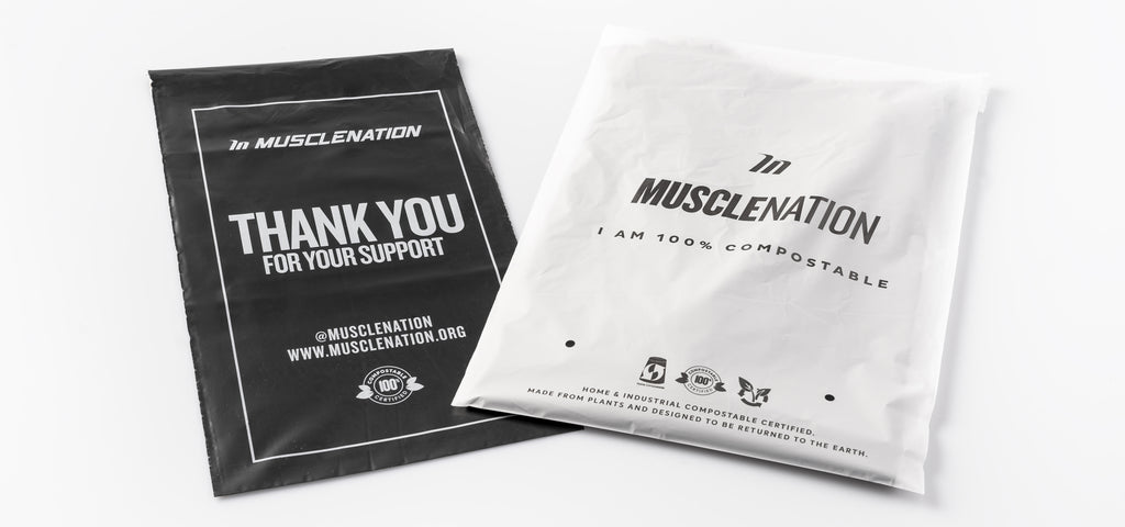 Creating a more sustainable warehouse is something we have been working on behind the scenes at Muscle Nation for quite some time. We have developed 100% compostable packaging for our postage satchels and garment bags. There were many different options of packaging and levels of durability, so this initiative required a great deal of trialling and testing before it came to life. As a result, all orders will now arrive to customers in our new 100% compostable postage satchels, in further support of our MN Sustainability Movement.