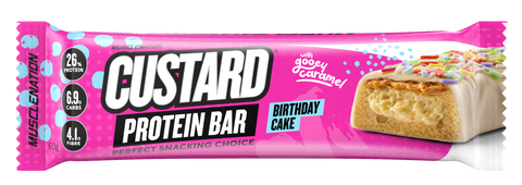 Make everyday feel like your birthday with a slice of a cake with our new Birthday Cake Custard Protein Bar. With a cake batter flavour profile, sprinkles on-top and a gooey caramel layer, this new flavour is a must try!
