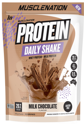 Looking for a Chocolate Protein Milkshake? Look no further than our new Milk Chocolate Daily Shake! It is a delicious blend of both Whey Protein (WPI) and Milk Protein to create the perfect protein drink with a thick milkshake consistency. This shake is very versatile and can be enjoyed as a shake with water or milk, in a smoothie with your favourite add ins, or add to yoghurt or oatmeal for a delicious high protein snack.