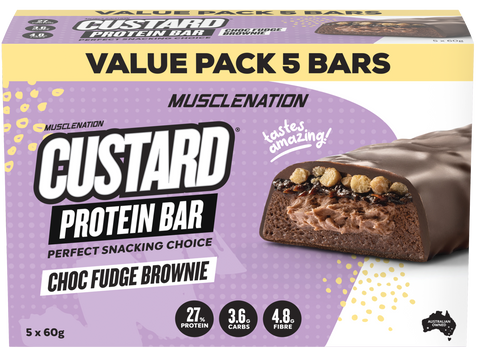 For all you chocolate lovers out there your chocolate dream has come true. Our Choc Fudge Brownie Custard Bar now comes in a convenient 5 bar value pack so you can enjoy more without having to restock 5 times.
