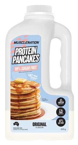 In an easy to mix and convenient bottle, making fluffy pancakes has never been easier! Simply add water or lite milk, and shake (makes 8-10 pancakes). In no time you will have ready-to-eat fluffy pancakes with the added benefits of Protein and Fibre. Our pancakes are 98% Sugar Free, 97% Fat Free and make the perfect breakfast, snack or a night time treat.