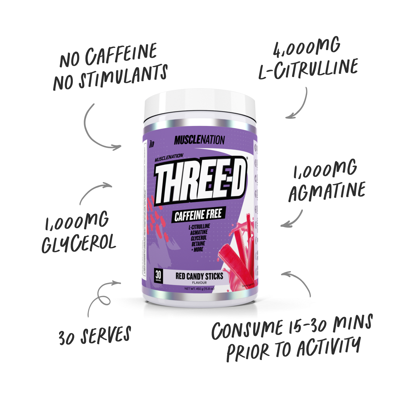 Three-D is our caffeine free pre-workout for anyone who wants that extra push and pump, but without the jitters and anxiety.